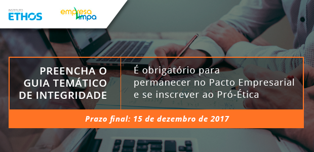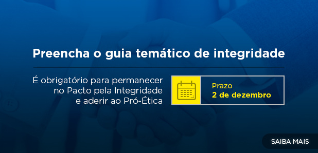 • Atenção: Prazo final para preenchimento do guia temático de integridadeO “Guia Temático: Integridade, Prevenção e Combate à Corrupção” é uma ferramenta de gestão de práticas de integridade empresarial, que apresenta um caminho para as empresas ...mais detalhes
